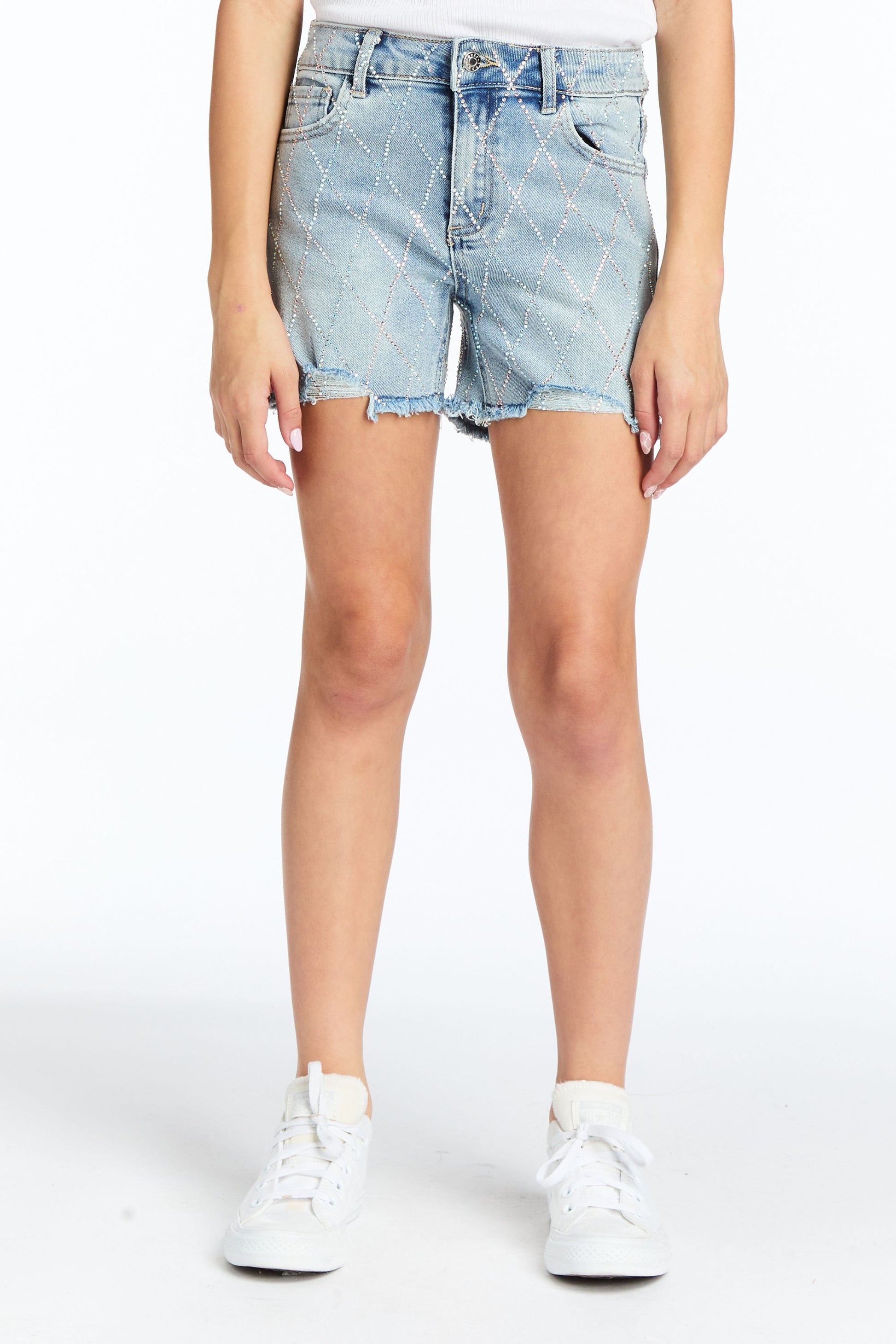 Radiate glamour with our Diamond Pattern Bling Shorts. These shorts are the epitome of chic style, adding a touch of sparkle to your spring/summer ensemble!
