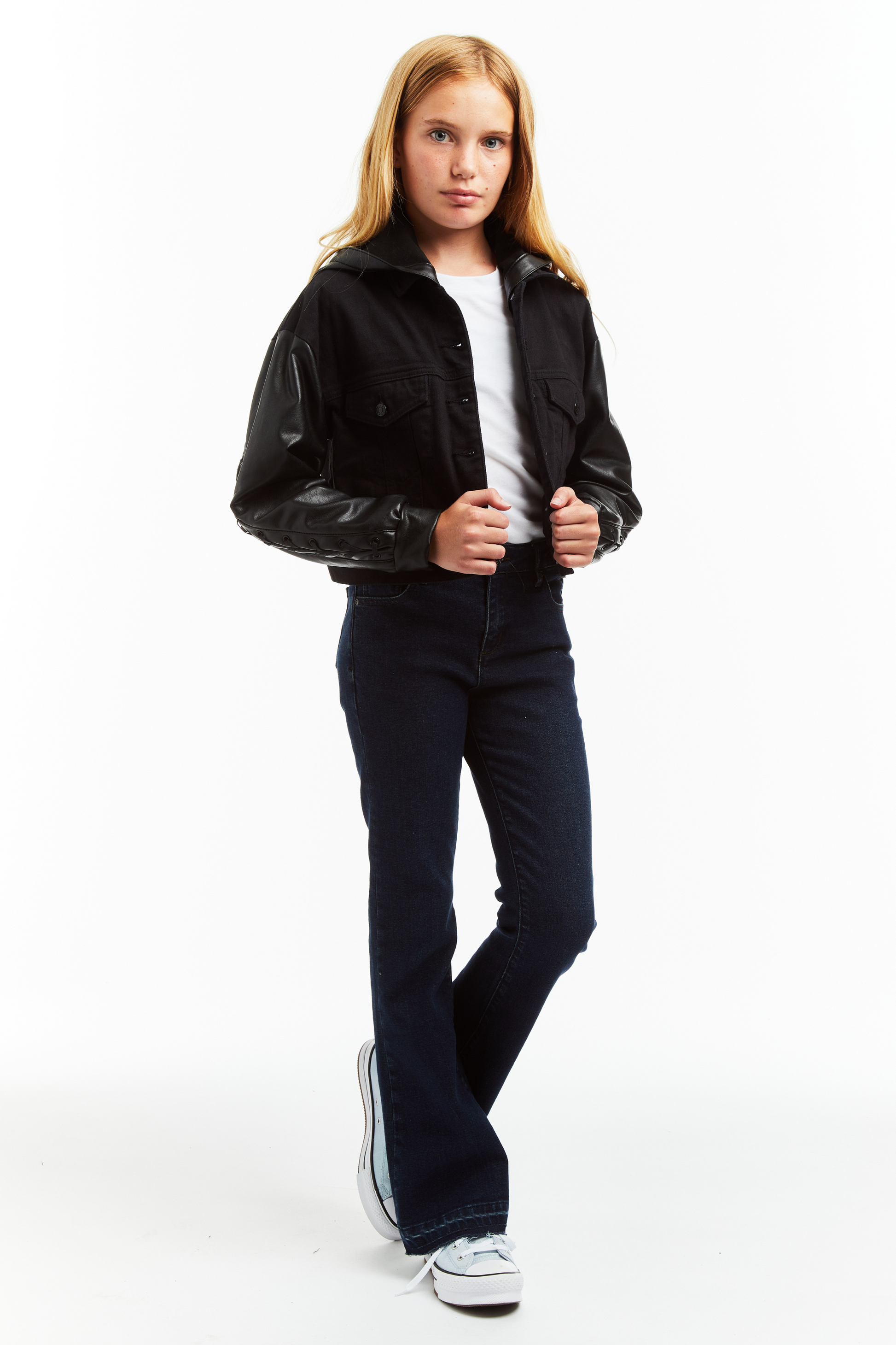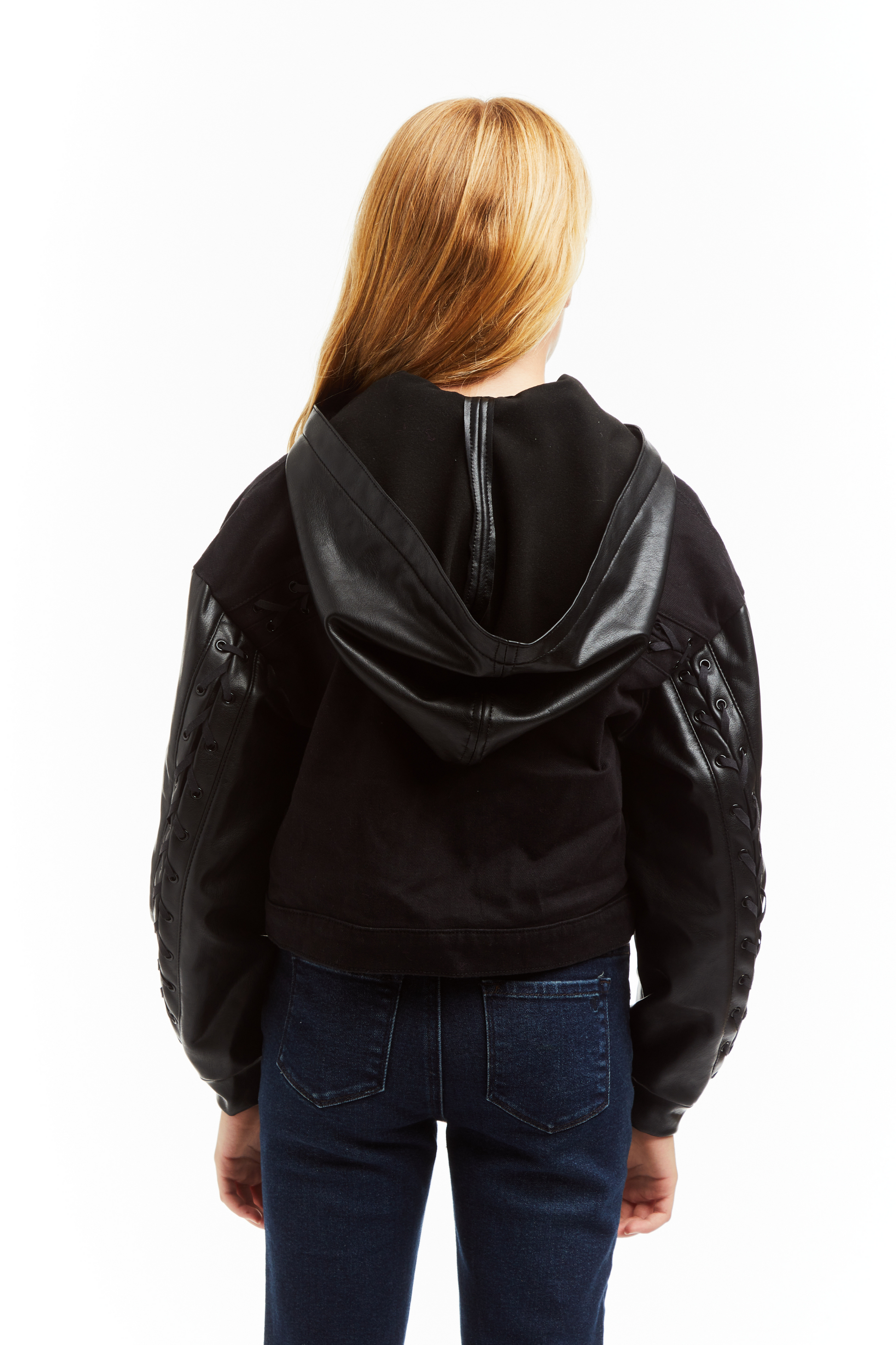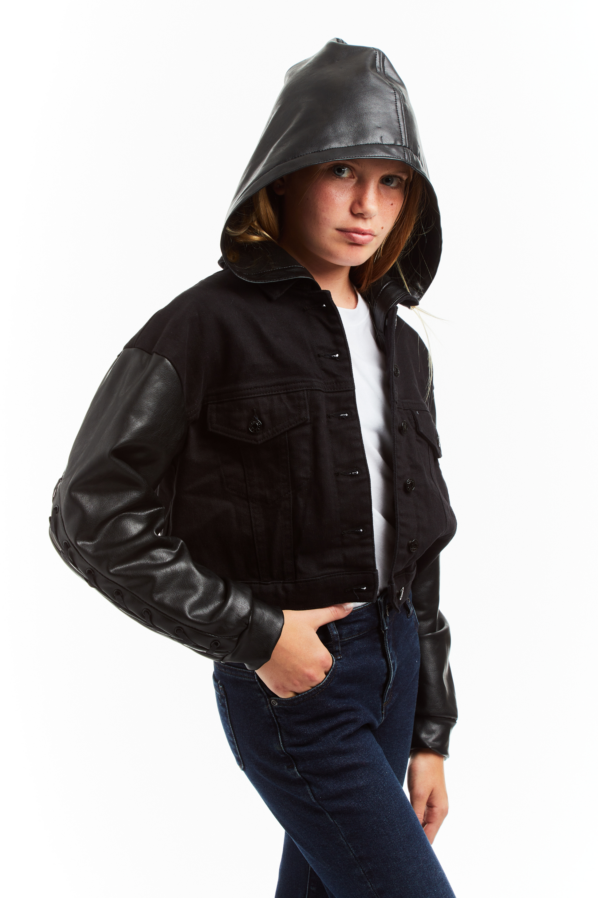 Rock the edgy look with our Pleather Combo Knit Crop Jacket. It's a bold statement piece that will have you turning heads wherever you go!